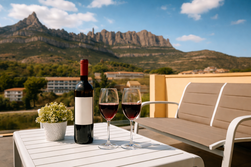 Acompaña vuestra estancia con una botella de vino cuidadosamente seleccionada, procedente de Denominaciones de Origen reconocidas de Cataluña, ideal para disfrutar con calma en un entorno íntimo y acogedor.
